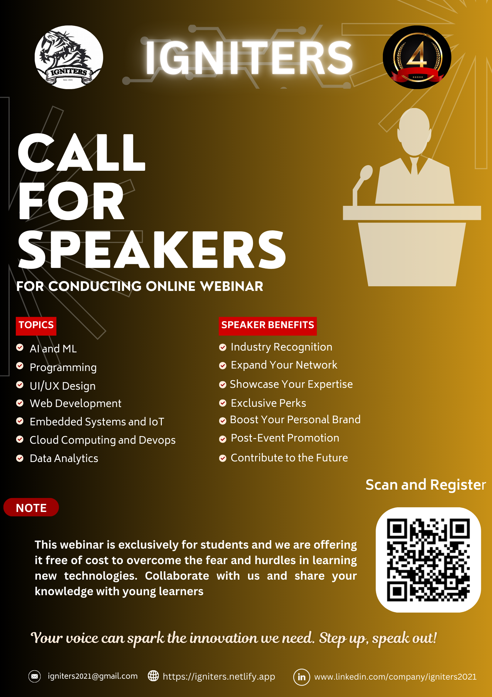 We're looking for passionate professionals and experts to share knowledge through our upcoming webinars! Join IGNITERS and inspire a global audience.